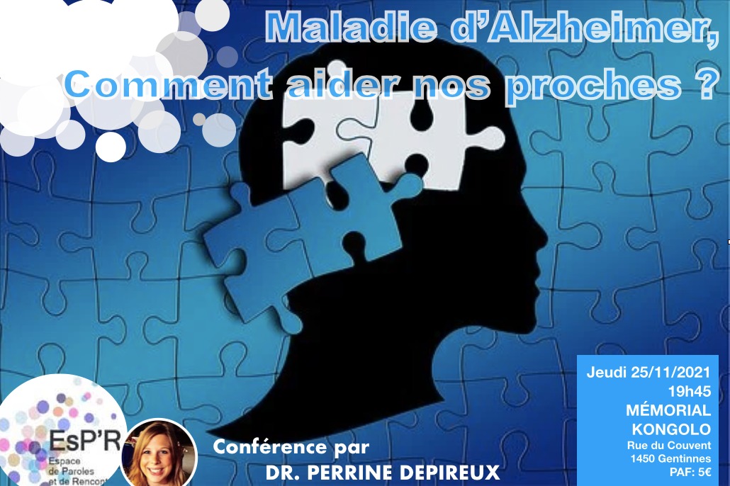 Le jeudi 25 novembre 2021, Dr Perrine Depireux viendra nous parler de la maladie d’Alzheimer et de la façon dont les proches peuvent accompagner la personne malade tout en se préservant.