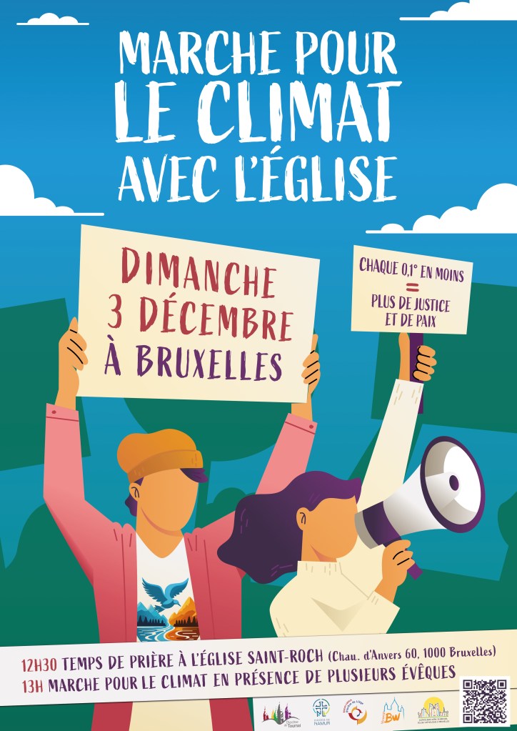 Marchons le 3 décembre à Bruxelles pour rejoindre en Eglise tant d’autres personnes qui s’engagent pour le climat lors de cette marche nationale ( https://marcheclimat.be/ ) Les évêques de Belgique encouragent cette participation et certains parmi eux accompagneront la marche.