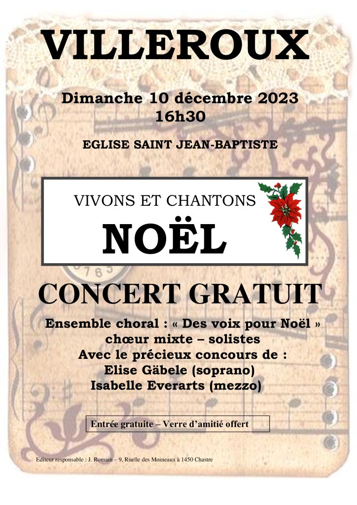 Concert de Noël organisé par la paroisse Saint Jean-Baptiste de Villeroux