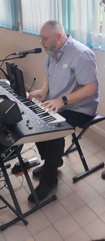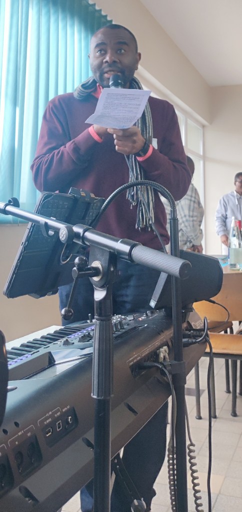 La musique a aussi joué un rôle précieux lors de cette belle journée. L’arrivée du musicien Guy, avec son piano et sa voix mélodieuse, a apporté cette touche conviviale essentielle pour créer une ambiance chaleureuse propice aux échanges. Les mélodies qu’il a proposées, tantôt jazzy, tantôt plus pop, ont accompagné le repas, ajoutant une note joyeuse et détendue. On soulignera sa reprise du désormais célèbre « Comment ne pas te louer ? » composé, pour la petite histoire, à Gentinnes-même, par le Père Aurélien SANIKO, résidant alors à Kongolo. Rendons à César…