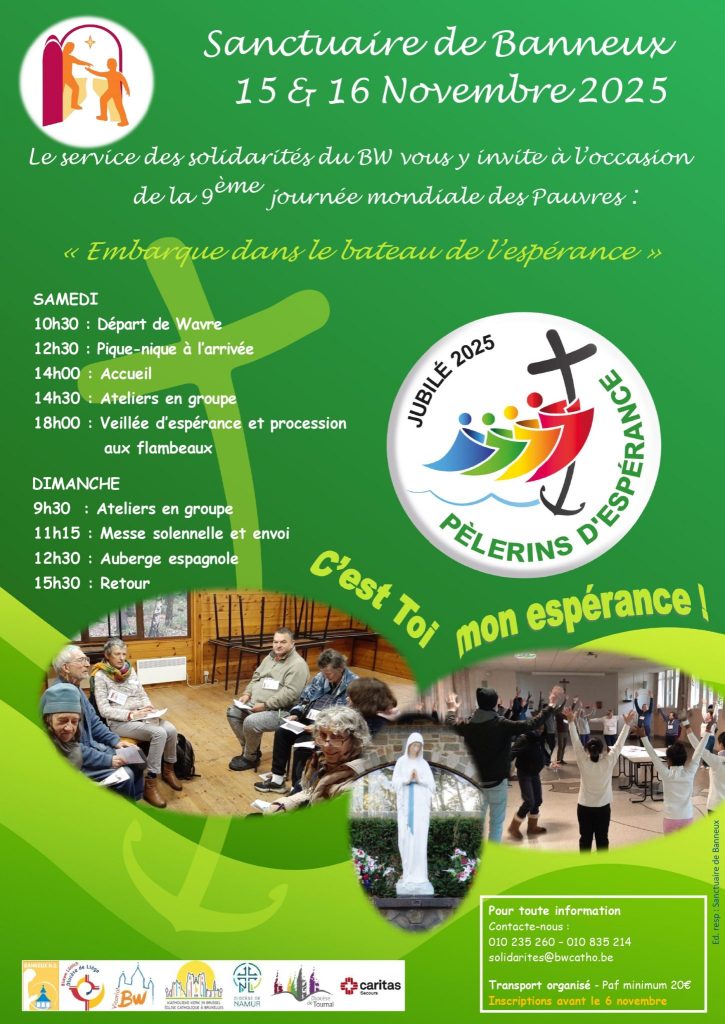 A Banneux, ce week-end du 15-16 novembre 2025, le service des Solidarités vous invite à célébrer en Eglise la 9ème Journée mondiale des pauvres. Ce rendez-vous interdiocésain se déroule auprès de la Vierge des pauvres à Banneux !