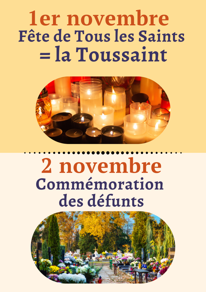 | Perbais | 1er novembre messe de Toussaint à 10h00, suivie de la bénédiction des tombes. | Dimanche 2 novembre messe des défunts à la messe dominicale de 10h. |