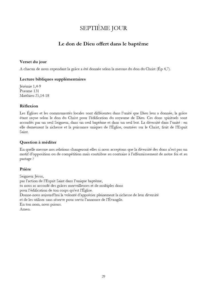 7è jour de la Semaine de Prière pour l’Unité des Chrétiens