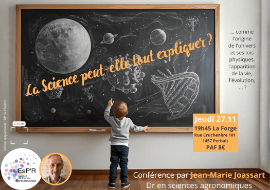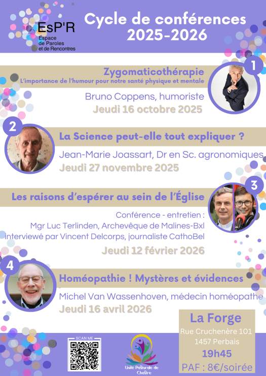 CHANGEMENT à partir de cette saison de conférences : Afin de faciliter l’ACCES, les conférences se tiendront à la FORGE à 1457 Perbais (W-S-P).